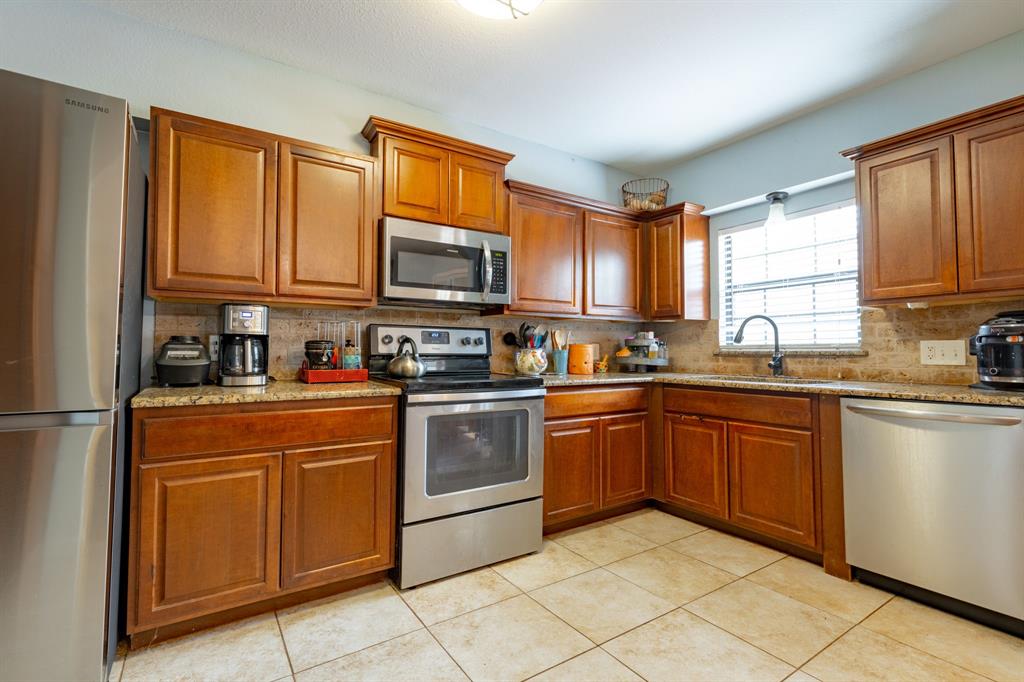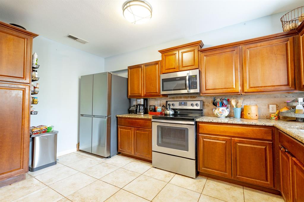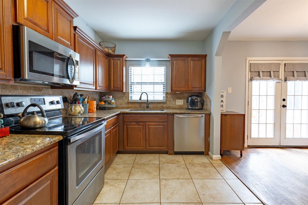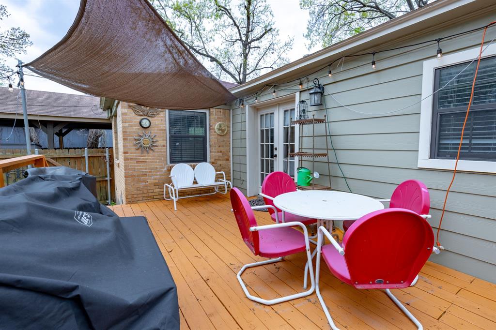 Welcoming home in El Tivoli Place! This charming home has so much to offer with an open floorplan, decorative brick fireplace, stainless steel appliances, and new paint! Entire interior repainted in March 2023 and entire exterior repainted in late 2022. Tile and beautiful manufactured hardwood floors throughout makes this house easy to maintain. No carpet! Pretty wrought iron fence surrounds the front yard with a gate across the driveway. Enjoy the comfort of parking within your gate. French doors guide you out to the backyard—come enjoy relaxing and entertaining on the large deck!